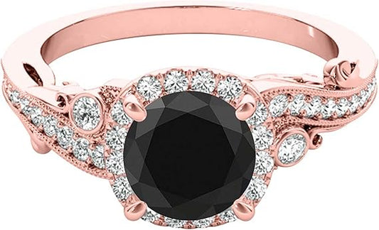 Diamond Engagement Ring For Women 1.30 Carat Round Shape Black Diamond Prong Setting 43 Stones Engagement Aniversary Ring In 14K Solid Rose, White & Yellow Gold By AoneJewelry Collection