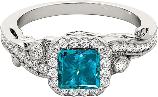Diamond Engagement Ring For Women 1 Carat Princess Cut Blue Diamond Prong Setting 47 Stones Engagement Aniversary Ring In 14K Solid Rose, White & Yellow Gold By AoneJewelry Collection