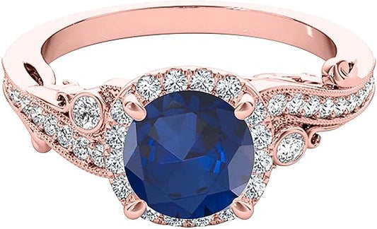 AoneJewelry Sapphire Gemstone Engagement Rings for Women | 10K Rose, White & Yellow gold 1.50 Carat Violet Blue Color Round Cut Prong Setting Genuine Diamond Wedding Jewelry Collection