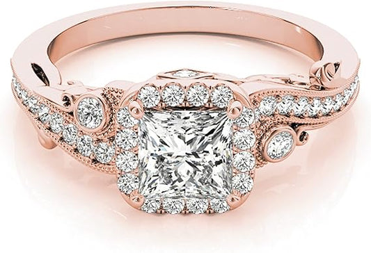 Diamond Engagement Ring For Women 0.55 Carat Princess Cut White Diamond Prong Setting 43 Stones Engagement Aniversary Ring In 14K Solid Rose Gold By AoneJewelry Collection