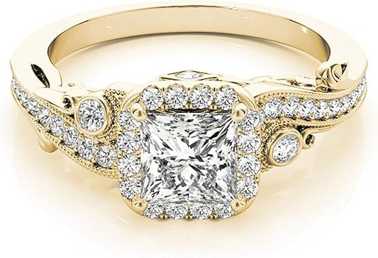 Diamond Engagement Ring For Women 0.55 Carat Princess Cut White Diamond Prong Setting 43 Stones Engagement Aniversary Ring In 14K Solid Yellow Gold By AoneJewelry Collection