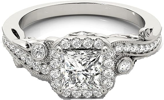 Diamond Engagement Ring For Women 0.55 Carat Princess Cut White Diamond Prong Setting 43 Stones Engagement Aniversary Ring In 14K Solid White Gold By AoneJewelry Collection