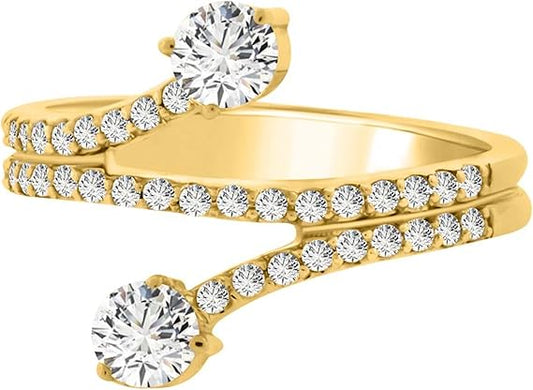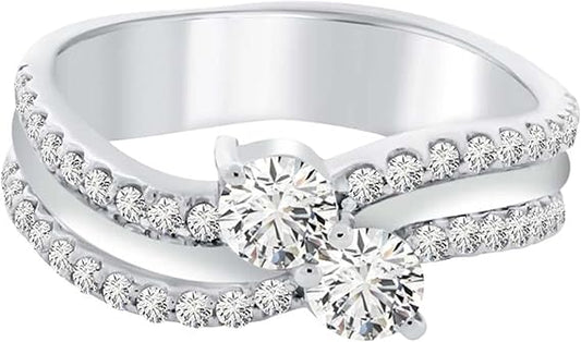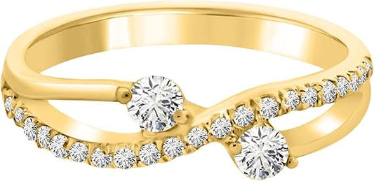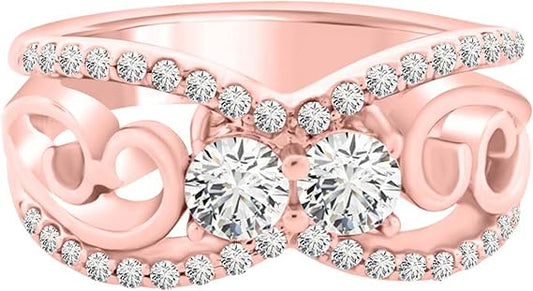 0.50 Ct Round Shape 2 Natural Diamond In Center With 28 white Side diamonds (IJ/I2-I3) Crafted In 10K Rose White And Yellow Gold Engagement wedding Ring For Women