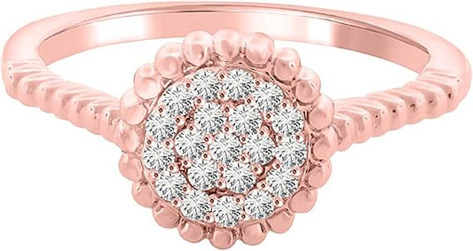 Diamond Engagement Ring For Women 0.20 Carat Round Shape White Diamond Prong Setting 20 Stones Engagement Aniversary Ring In 10K Solid Rose, White & Yellow Gold By AoneJewelry Collection