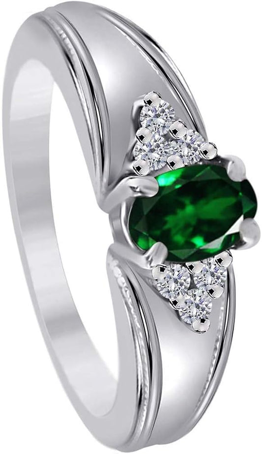0.65 Ct 6x4 Oval Shape Created Emerald Gemstone (AA) With 6 white Side diamonds (HI/I1-I2) In 10K Rose White And Yellow Gold Engagement wedding Ring For Women, Best Valentinesday Gift