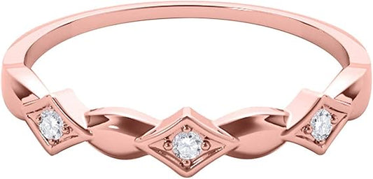 10K White Rose & Yellow Gold Three Stone Prong Set Diamond Wedding Band, Best Valentinesday Gift