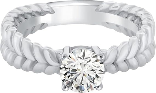 Diamond Engagement Ring For Women 1 Carat Round Shape White Diamond Prong Setting 42 Stone Engagement Aniversary Ring In 14K Solid Rose, White & Yellow Gold By AoneJewelry Collection