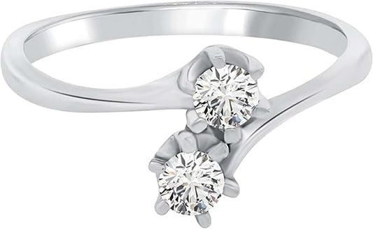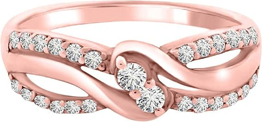 Diamond Engagement Ring For Women 0.25 Carat Round Shape White Diamond Prong Setting 2 Stones Engagement Aniversary Ring In 14K Solid Rose, White & Yellow Gold By AoneJewelry Collection