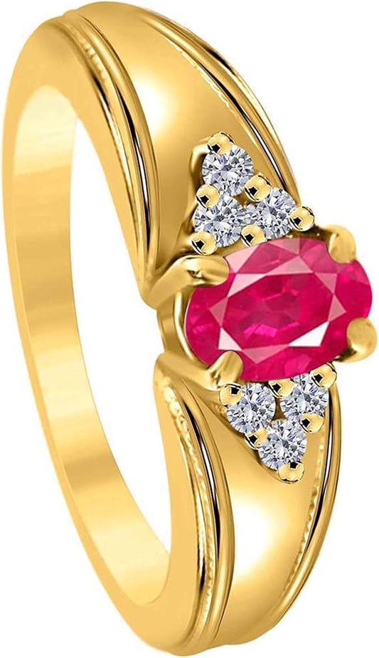 0.65 Ct 6x4 Oval Shape Created Ruby Gemstone (AA) With 6 white Side diamonds (HI/I1-I2) In 10K Rose White And Yellow Gold Engagement wedding Ring For Women, Best Valentinesday Gift