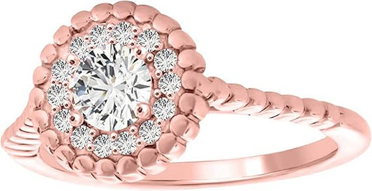 Diamond Engagement Ring For Women 0.75 Carat Round Shape White Diamond Prong Setting 17 Stones Engagement Aniversary Ring In 14K Solid Rose, White & Yellow Gold By AoneJewelry Collection