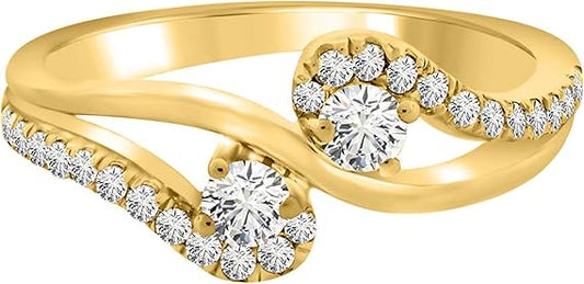 Diamond Engagement Ring For Women 0.30 Carat Round Shape White Diamond Prong Setting 2 Stones Engagement Aniversary Ring In 10K Solid Rose, White & Yellow Gold By AoneJewelry Collection