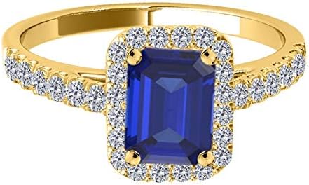1.20 Cttw (I-J, I1-I2) Emerald Cut Sapphire And Natural Diamond Ring By Aone Jewelry in 14k Solid Yellow Gold (size 5-9), Best Valentinesday Gift