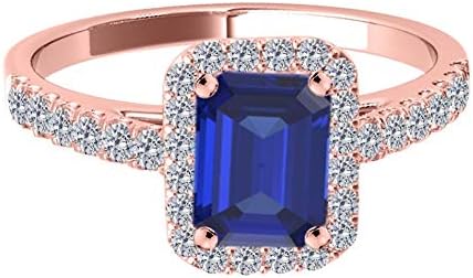 Sold By Aone Jewelry 1.20 Cttw Emerald Cut Sapphire And Diamond Ring For Women (size 5-9) in 14K Rose Gold, Best Valentinesday Gift