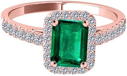 14K Solid Gold (Rose, White, Yellow) Gemstone And Diamond Ring with 1.20 Carat (I-J, I1-I2) Emerald Cut Emerald, Best Valentinesday Gift