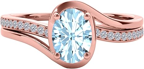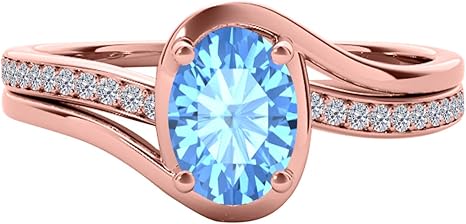 10K 1.40 Carat Oval Shape Blue-Topaz And Diamond Ring In Rose, White & Yellow Gold, Best Valentinesday Gift