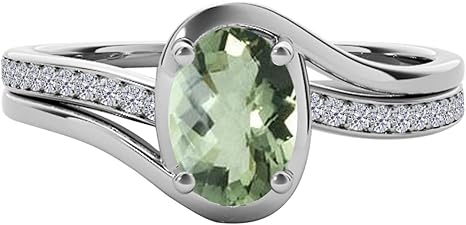 Green-Amethyst And Diamond Ring In Solid Rose, White & Yellow Gold, Best Valentinesday Gift