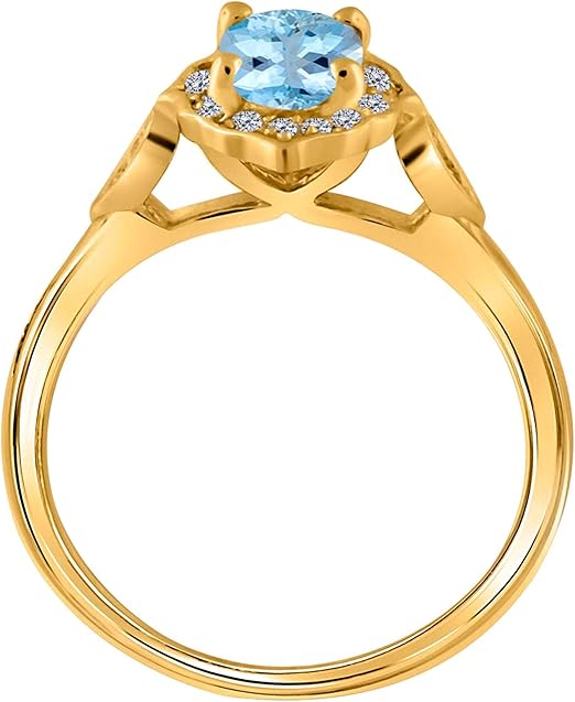 Aonejewelry 0.85 Carat Oval Shape Aquamarine And Diamond Ring In 10K Solid Rose, White & Yellow Gold, Best Valentinesday Gift