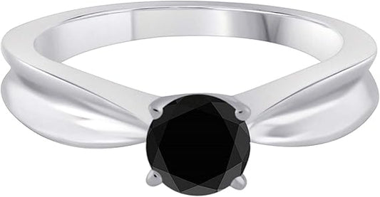 1.00 Carat Black Diamond Solitaire 14K White, Yellow & Rose Gold Ring, Best Valentinesday Gift