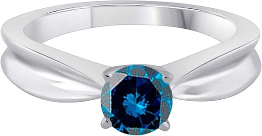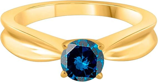 1/2 Carat 10K White, Yellow & Rose Gold Solitaire Blue Diamond Ring, Best Valentinesday Gift