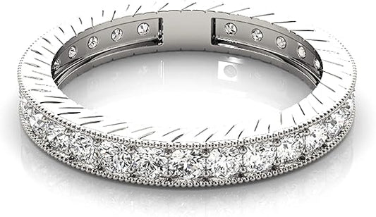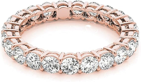 14K Solid White, Yellow & Rose Gold Diamond Eternity Wedding Band, Best Valentinesday Gift