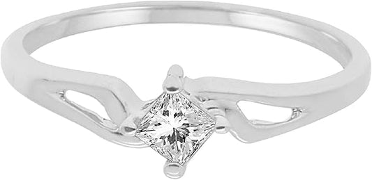 Diamond Princess Shape Solitaire Ring In 14K Solid White & Yellow Gold, Best Valentinesday Gift