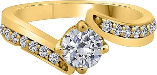 Engagement Rings for Women 1/2 Carat Diamond Bridal Set Ring In 10K Solid White & Yellow Gold Wedding Jewelry Collection -Valentines Day Gift for Her