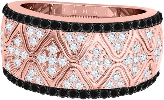 Diamond Wedding Band For Women 0.55 Carat Brilliant Round Natural White & Black Diamond Engagement Aniversary Ring Band In 10K Solid Rose Yellow White Gold | Aone Jewelry Collection