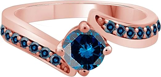 Aonejewelry 0.75 Carat Blue Natural Diamond Ring In 14K Solid Rose, White And Yellow Gold, Best Valentinesday Gift