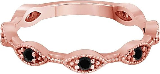 Aonejewelry Black Diamond Hand-Crafted Wedding Band In 10K Solid Rose, White And Yellow Gold, Best Valentinesday Gift