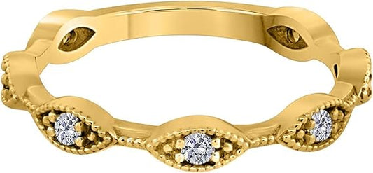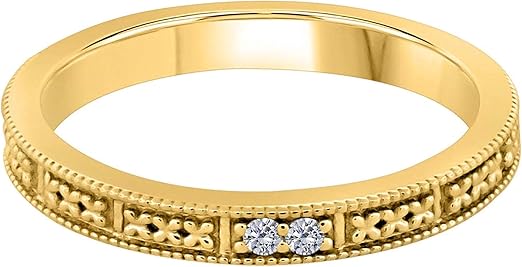 Aonejewelry Diamond Hand-Crafted Wedding Band In 10K Solid White And Yellow Gold, Best Valentinesday Gift