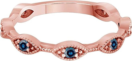 Blue Diamond Wedding Band In 10K Solid Rose, White And Yellow Gold, Best Valentinesday Gift