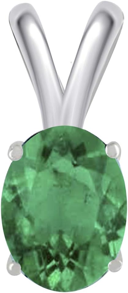 0.45Ct Oval Emerald Pendant in 14k White Gold (6x4 mm), Best Valentinesday Gift