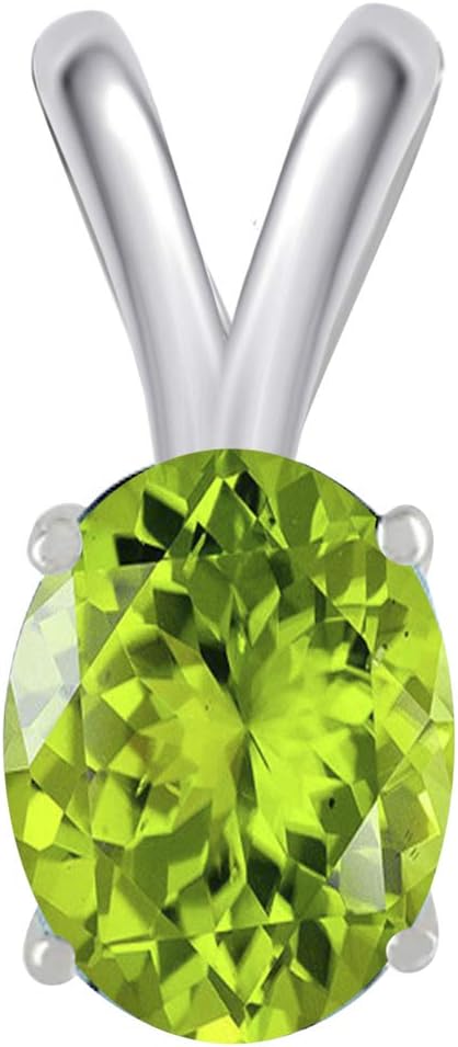 0.45Ct Oval Peridot Pendant in 14k White Gold (6x4 mm), Best Valentinesday Gift