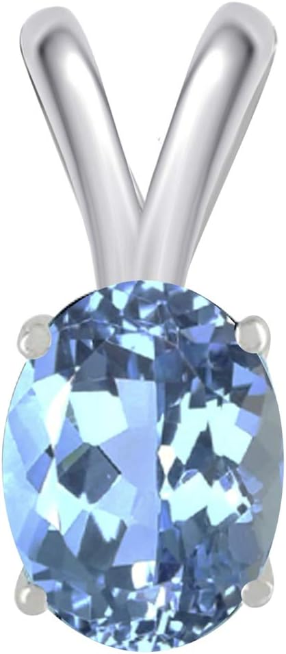 0.45Ct Oval Blue Topaz Pendant in 14k White Gold (6x4 mm), Best Valentinesday Gift