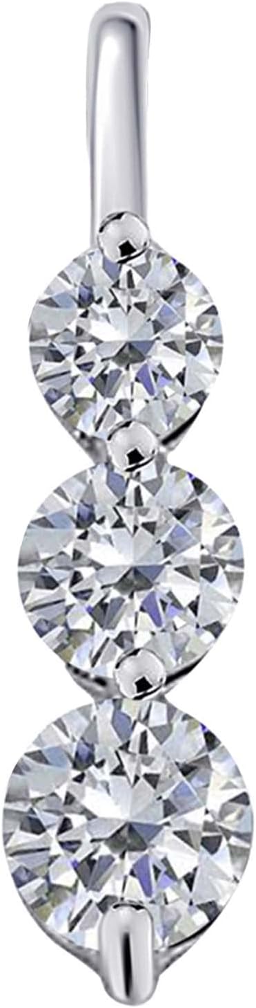 1.0 Carat Lab-Grown Round White Diamond Three-Stone Vertical Pendant Necklace For Women In 14K Rose, Yellow and White Gold with Gold Plated 925 Sterling Silver 18" Box Chain