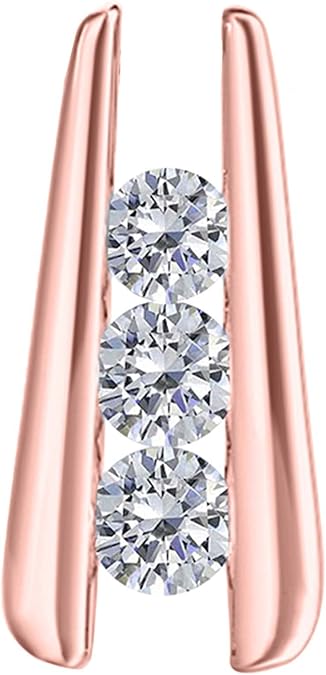 0.10 Carat Lab-Grown Round Diamond Channel-Set Pendant Necklace For Women In 10K Rose, Yellow and White Gold with Gold Plated 925 Sterling Silver 18" Box Chain