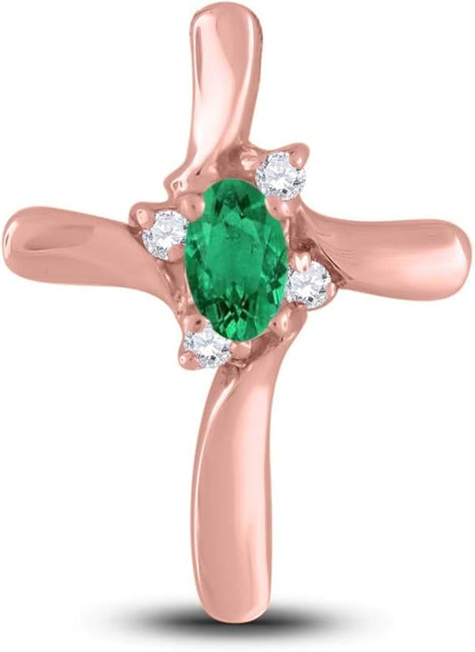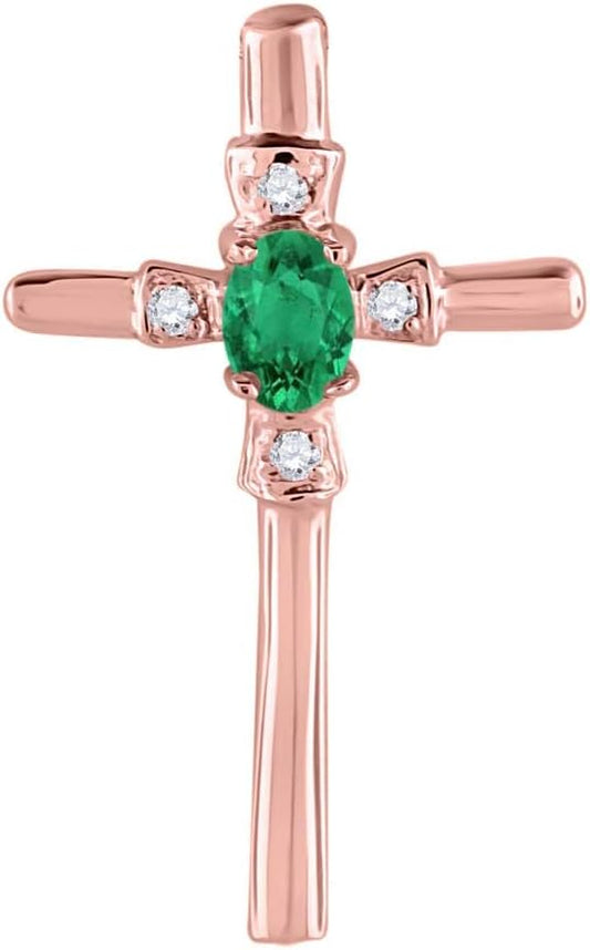 Aone Jewelery 0.30 Carat 5x3 Oval Gemstone-Diamond Religious Cross Pendant For Woman Crafted In 10k Rose White And Yellow Gold With 18" Gold Plated Over 925 Sterling Silver Box Chain