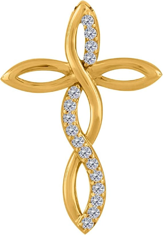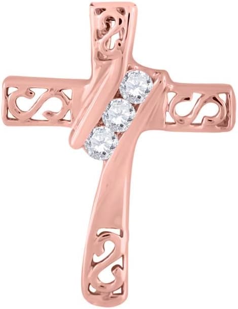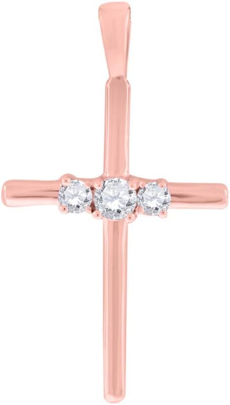 AoneJewelry 0.25 Carat Lab-Grown Round White Diamond Cross-Pendant Necklace For Women in 10K Rose, White and Yellow Gold with Sterling Silver Box Chain.