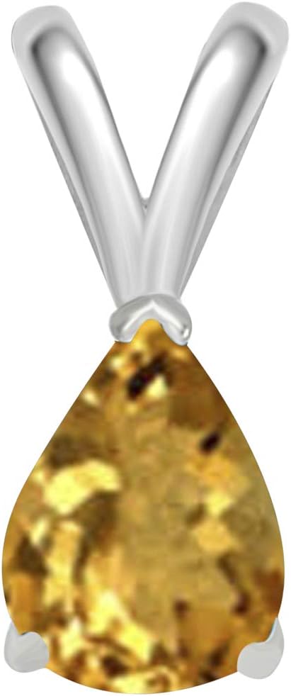 AoneJewelry 0.90Ct Pear Citrine Pendant in 14k White Gold (8x6 mm), Best Valentinesday Gift