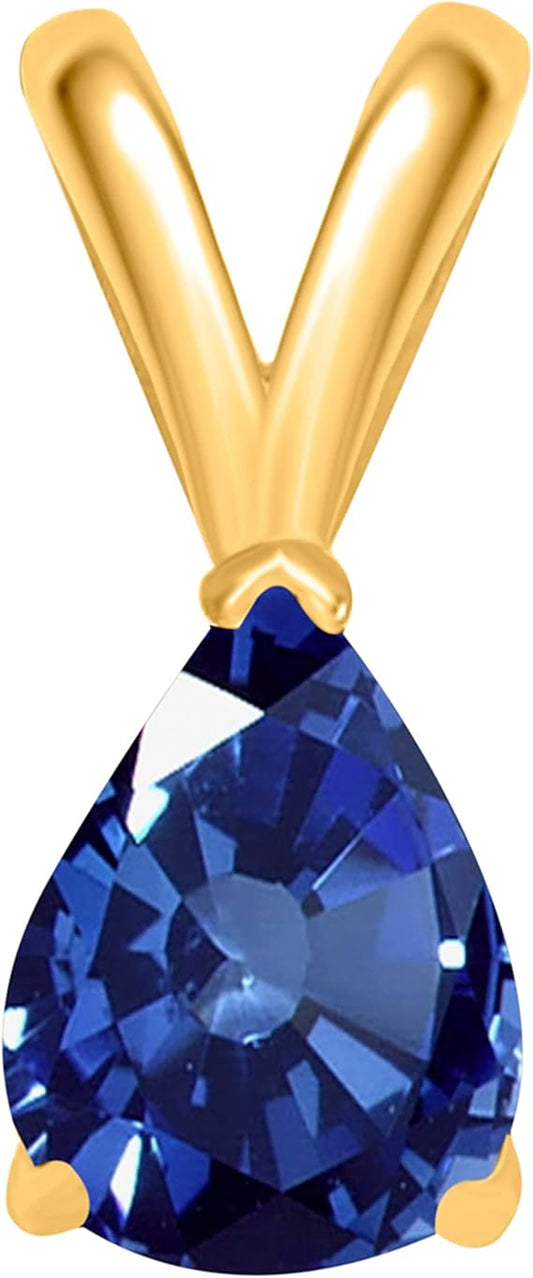AoneJewelry Sapphire Pendant Necklace for Women | 14k Yellow Gold 0.70 Carat 1 Stone Round Cut Prong Setting 18" Silver Box Chain Necklace Wedding Jewelry Collection