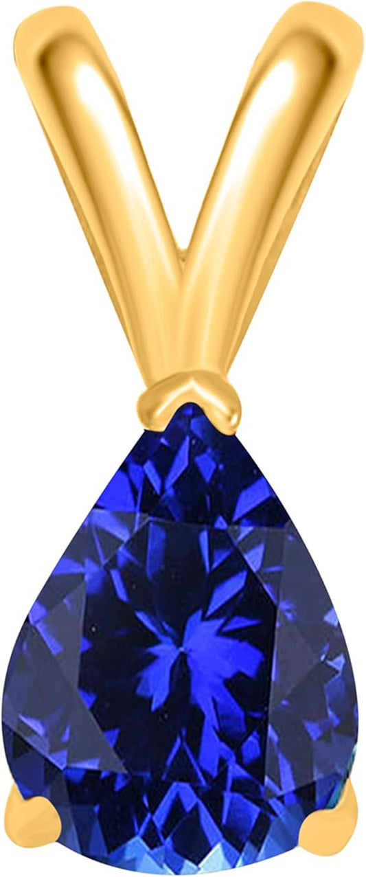 AoneJewelry Tanzanite Pendant Necklace for Women | 14k Yellow Gold 0.70 Carat 1 Stone Round Cut Prong Setting 18" Silver Box Chain Necklace Wedding Jewelry Collection