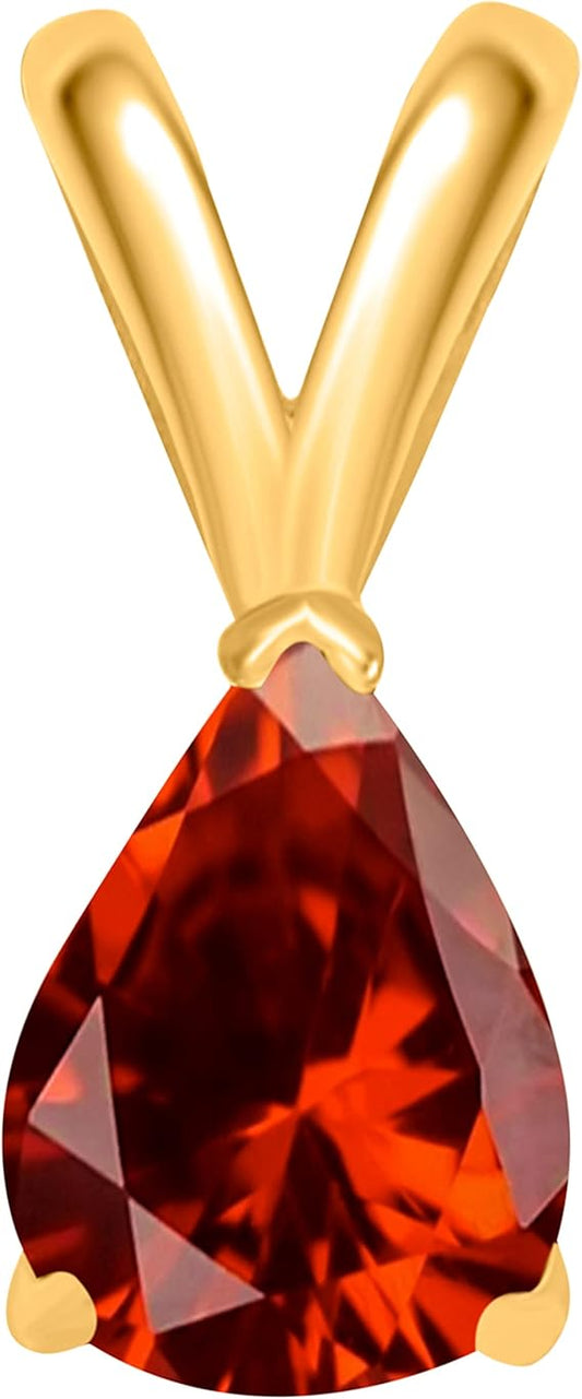 AoneJewelry Garnet Pendant Necklace for Women | 14k Yellow Gold 0.70 Carat 1 Stone Round Cut Prong Setting 18" Silver Box Chain Necklace Wedding Jewelry Collection