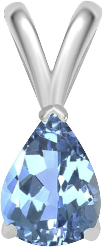 0.45Ct Pear Aquamarine Pendant in 14k White Gold (6x4 mm), Best Valentinesday Gift