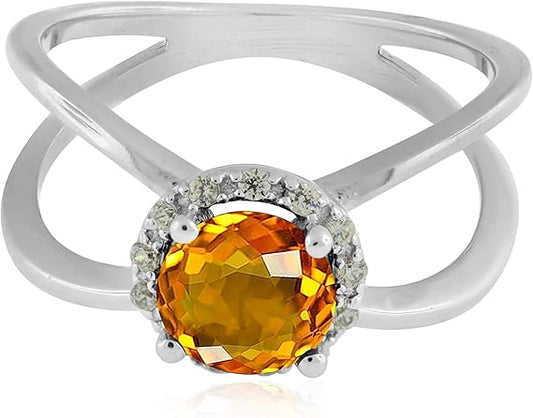 Aonejewelry 0.85 Carat 6MM Round Citrine And Diamond Ring In 10K Solid Rose, White & Yellow Gold, Best Valentinesday Gift