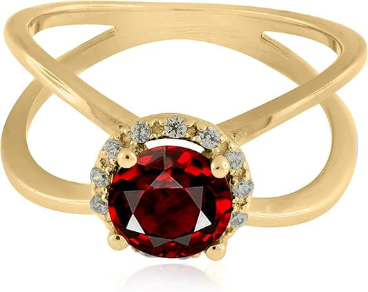 Aonejewelry 0.85 Carat 6MM Round Garnet And Diamond Ring In 10K Solid Rose, White & Yellow Gold, Best Valentinesday Gift