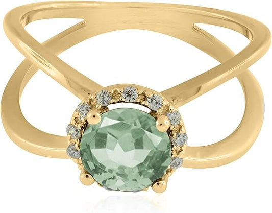 Aonejewelry 0.85 Carat 6MM Round Green Amethyst And Diamond Ring In 10K Solid Rose, White & Yellow Gold, Best Valentinesday Gift