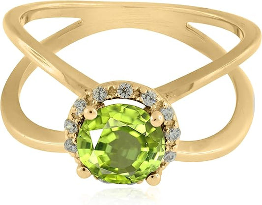 Aonejewelry 0.85 Carat 6MM Round Peridot And Diamond Ring In 10K Solid Rose, White & Yellow Gold, Best Valentinesday Gift