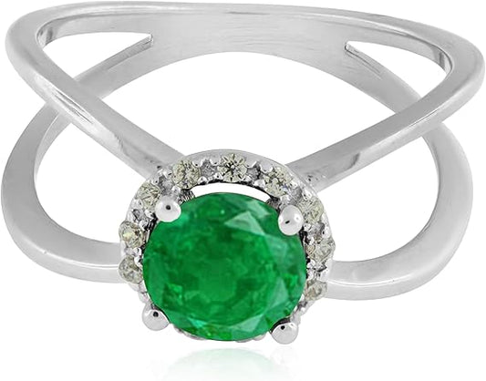 Aonejewelry 0.85 Carat 6MM Round Created Emerald And Diamond Ring In 10K Solid Rose, White & Yellow Gold, Best Valentinesday Gift