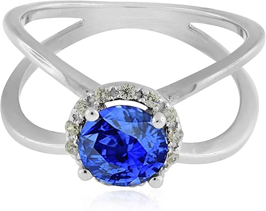 Aonejewelry 0.85 Carat 6MM Round Created Tanzanite And Diamond Ring In 10K Solid Rose, White & Yellow Gold, Best Valentinesday Gift