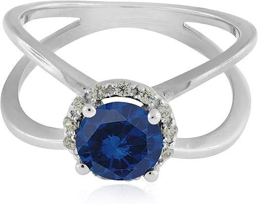Aonejewelry 0.85 Carat 6MM Round Created Sapphire And Diamond Ring In 10K Solid Rose, White & Yellow Gold, Best Valentinesday Gift